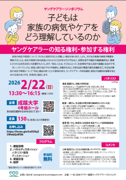 ご自身の所属団体等で、ヤングケアラーに関する支援情報やセミナーやイベント、またヤングケアラー以外でも主に子ども・若者支援に関わる情報やイベント情報、団体の定例活動のご案内など、このネットワークで共有したい情報を自由にご提供下さい(まずネットワークのご参加登録をお願いいたします)